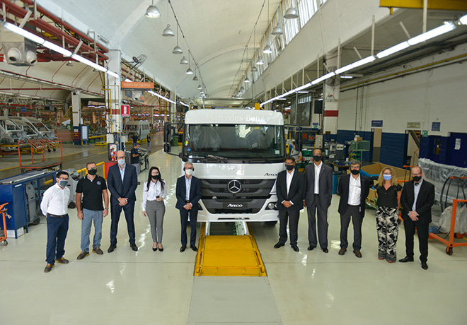 Durante el recorrido, el funcionario se interiorizó sobre las nuevas tecnologías y los nuevos proyectos, así como también conoció sobre la gran trayectoria de la empresa. El Centro Industrial Juan Manuel Fangio fue la primera fábrica en instalarse fuera de Alemania en 1951y cumplirá próximamente 70 años de compromiso industrial ininterrumpido en el país, siendo actualmente un complejo de alta tecnología para la fabricación de camiones, utilitarios y chasis de buses. Como dato adicional, es importante recordar que Mercedes-Benz es desde hace más de diez años líder local en ventas de vehículos comerciales.