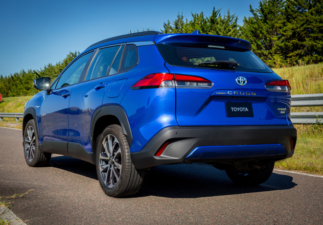 En la parte trasera, los faros “abrazan” al vehículo desde el lateral, con detalles como la inscripción “Corolla Cross” en la parte central y el spoiler trasero, que aportan dinamismo.