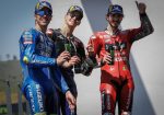 Un giro después, a 6 del final, ‘Pecco’, que partía 11º, superaría a Zarco para colocarse 2º. Lo peor estaba por llegar para el francés, ya que perdería el liderato de forma súbita al sucumbir en la curva 10. Un duro golpe que allanaba aún más el camino para Quartararo, que un par de vueltas después, a 4 del final, disponía de casi 5 segundos de renta sobre un Bagnaia que aventajaba en 7-8 décimas a Mir. El balear, por su parte, sacaba 6 décimas a Morbidelli. El duelo a tres bandas se acrecentaría hasta el sprint final de la carrera, con el italo-brasileño crecido con su goma trasera dura. Tanto él como Mir se echarían sobre ‘Pecco’ en la última vuelta, pero las posiciones se mantendrían, con Quartararo ganando con holgura para liderar el podio acompañado de Bagnaia y Mir.