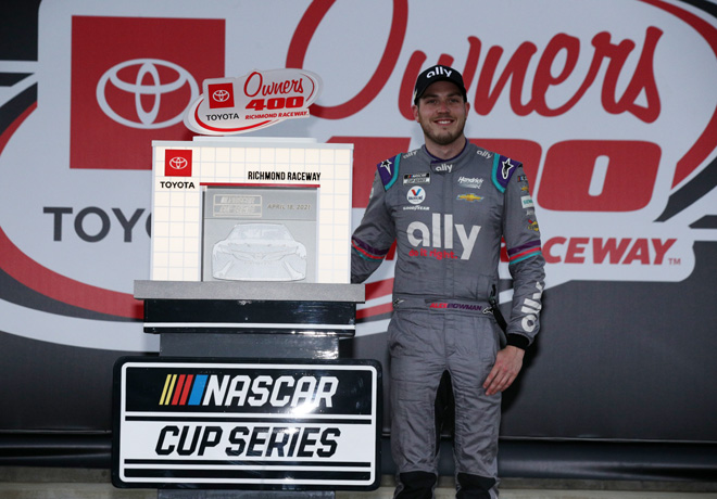 Alex Bowman (Chevrolet) conquistó su tercera victoria en la pista de Virginia y se la arrebató al piloto del Joe Gibbs Racing, quien habÃa logrado el triunfo en los dos primeros «stages» de carrera, una situación que se repite y que le volvió a ocurrir a Hamlin por tercera vez consecutiva, le sucedió en Bristol con Logano y luego en Martinsville a manos de Truex Jr.