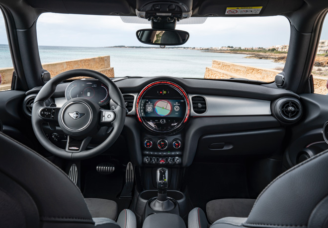 El MINI John Cooper Works ahora también cuenta con un instrumento central rediseñado con una pantalla táctil de 8.8 pulgadas en diseño de panel negro de serie, asà como un nuevo sistema operativo cuya moderna pantalla gráfica hace que la selección y el control de las funciones del vehÃculo, el programa de audio, la navegación, la comunicación y las aplicaciones aún más intuitivo. Por primera vez, los Live Widgets están disponibles para este propósito, que se pueden seleccionar mediante un movimiento de deslizamiento en la pantalla táctil.