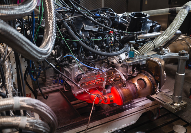 Las pruebas en banco durante el desarrollo del motor atmosférico de 4.0 litros de alto régimen requirieron aún más tiempo.