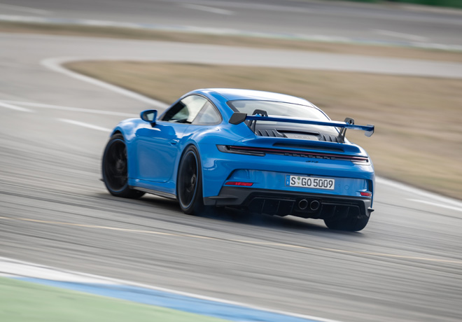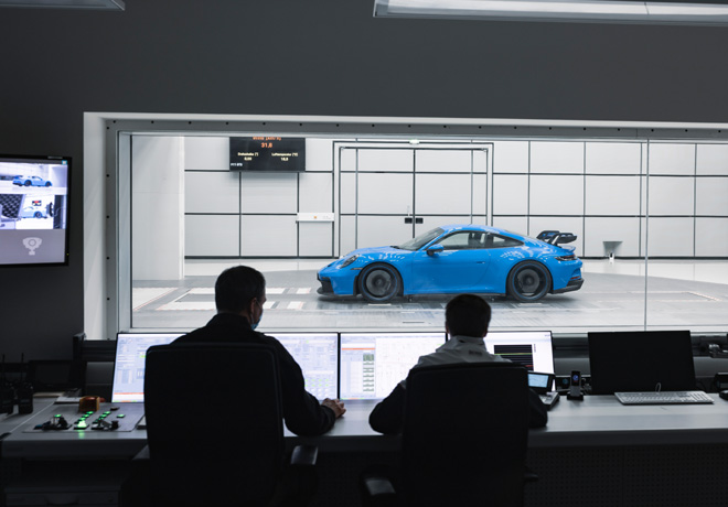 Los ingenieros y los pilotos también pusieron a prueba el motor del nuevo 911 GT3 fuera del banco. «Durante el desarrollo, realizamos 600 ensayos de emisiones para cumplir las estrictas normas», afirmó Thomas Mader. También fueron aplicados estándares muy exigentes para la resistencia del motor: en el óvalo de Nardò (Italia) tuvo que rendir sin problemas durante 5000 km, a una velocidad constante de 300 km/h y parando solo para repostar.
