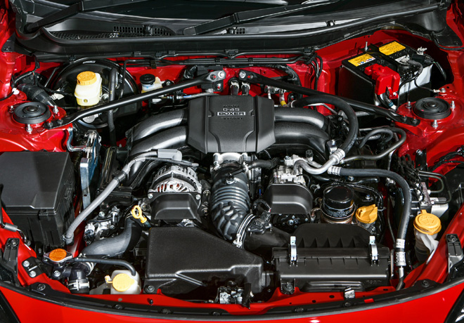 2) Nuevo motor de cuatro cilindros opuestos horizontalmente de 2.4L que conserva las cualidades únicas dela 86.