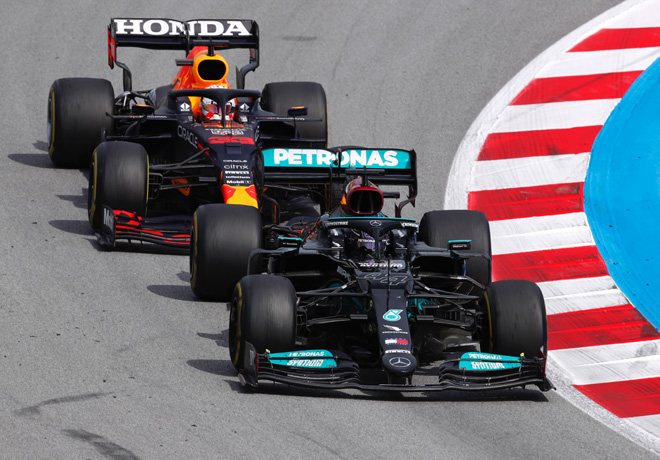 Casi volando por la pista Hamilton comenzó a descontar vuelta tras vuelta la ventaja acumulada por Verstappen, hasta que faltando 6 vueltas para terminar pudo adelantar al holandés para conseguir su triunfo número 98.
