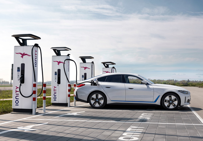 La Unidad de Carga Combinada (CCU por sus siglas en inglés) del BMW i4 ha sido diseñada para permitir una carga de baterÃa extremadamente flexible. La carga de corriente directa (DC) es posible hasta 200 kW. Por ejemplo, en una breve parada a mitad de viaje en una estación de carga de alta potencia, la autonomÃa del vehÃculo se puede aumentar hasta 164 kilómetros en BMW i4 eDrive40 y hasta 140 kilómetros en el BMW i4 M50 dentro de 10 minutos desde un nivel de carga del 10 por ciento.