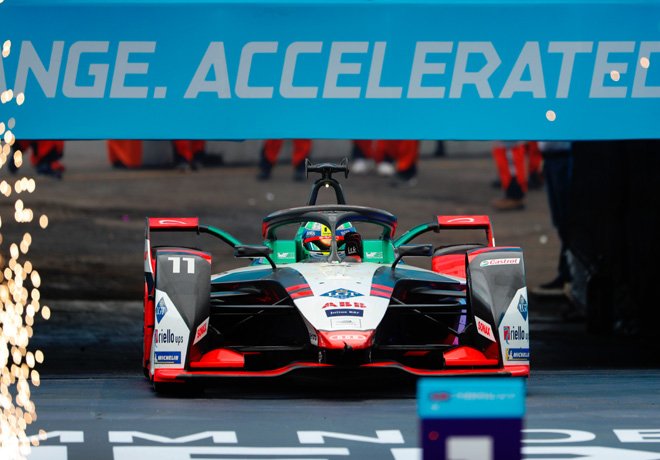 Antes de concluir el primer giro tuvo que ingresar el Auto de Seguridad por el golpe contra las defensas de Nick Cassidy (Envision Racing), mientras que Sebastien Buemi era sancionado con 10 segundos a cumplir en el pit lane por cambiar una configuración del auto durante la clasificación.