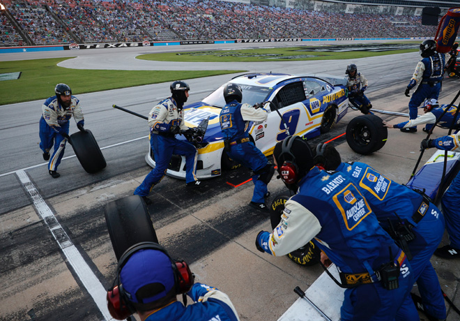 Se fueron sucediendo las paradas y se aguardaba la detención de los integrantes del lote puntero, los primeros en hacerlo fueron los cuatro del Hendrick Motorsports, el más rápido en salir fue Elliott y su equipo de mecánicos liderado por Alan Gustafson ganó los «100 mil verdes» del premio acordado.