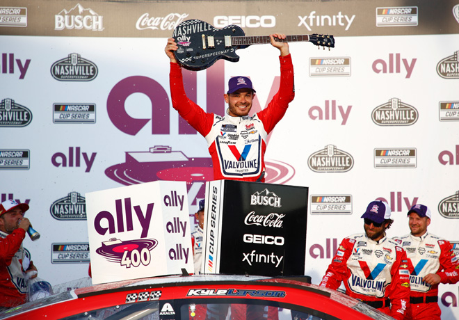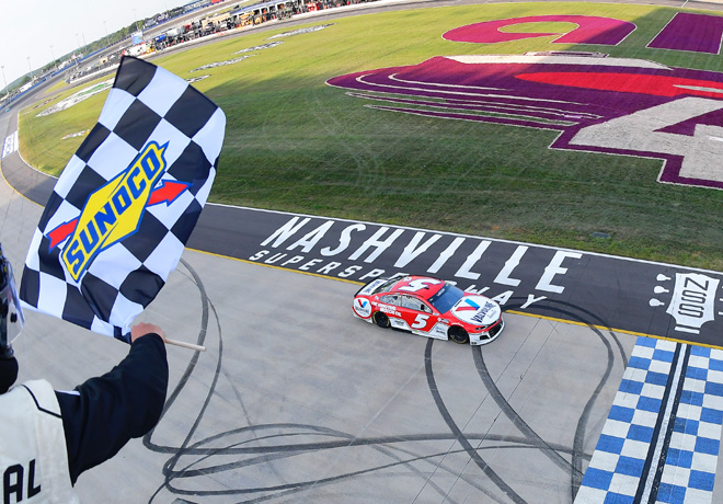 Kyle Larson ganó la primera carrera de la NASCAR Cup Series en Nashville Superspeedway, logrando su tercera victoria consecutiva. El Chevrolet Nº5 Hendrick Motorsports de Larson lideró 264 de las 300 vueltas.