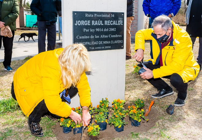 Por su parte, Alejandra Recalde, presidente de la Fundación Jorge Recalde destacó que “Esto no hubiera sido posible sin la colaboración del municipio de Mina Clavero, de Julio Bañuelos, de todo el Consejo Deliberante de la ciudad y de mucha gente del pueblo. Este es el cumpleaños de Jorge y lo festejamos de la mejor manera. A él le hubiera encantado que se festeje con todos sus amigos. A los pensamientos que se plantan todos los años, se le sumó la efectivización de la cesión de los terrenos que lo simbolizamos con la colocación de este cartel y donde los tendremos a Jorge siempre presente con todas las actividades que realicemos”.