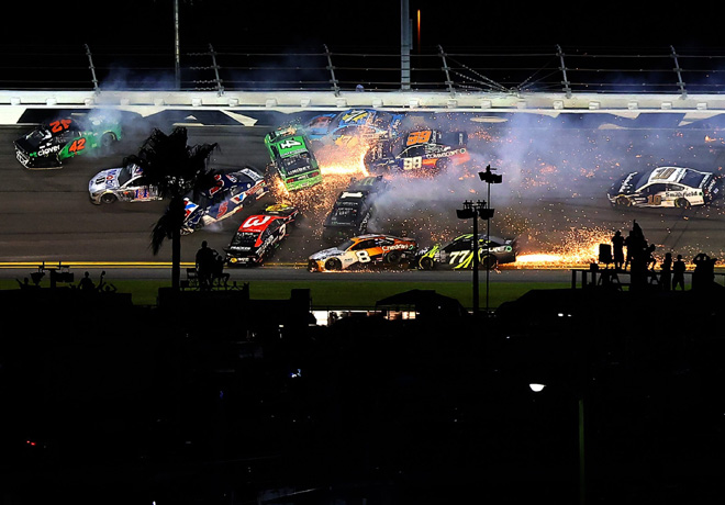 Sorpresivamente, el auto de Logano golpeaba la pared y desaparecÃa de la definición, ahora era Elliott el gran candidato, pero Di Benedetto lo tocó y desataron un segundo «Big One» que abrió el desenlace a cualquier resultado.