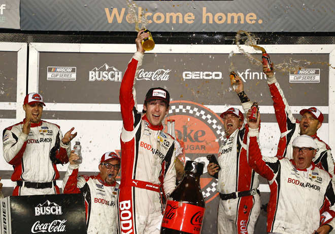 Otro «castigado ilustre» era Michael McDowell (Ford-Front Row), ganador de las Daytona 500 que abrieron la presente temporada, pero deberÃa dejar la carrera por problemas mecánicos con 23 vueltas solamente.