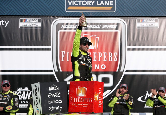 Hay que destacar que los pilotos de Ford han ganado las últimas siete carreras de la Copa en Michigan, y que también la competencia tuvo bandera amarilla por poco tiempo como consecuencia de una pequeña lluvia que cayó en el circuito.