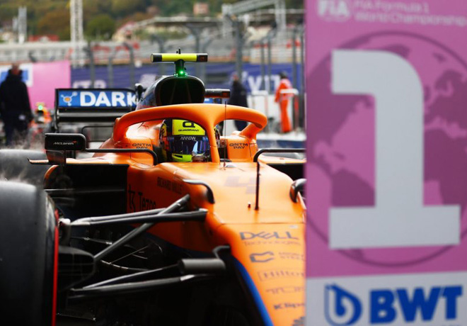 Lando Norris con el McLaren-Mercedes logró la pole position para el Gran Premio de Rusia en el circuito de Sochi, logrando la primera pole para él y también para su equipo luego de la obtenida `por McLaren-Mercedes en Brasil 2012 con Lewis Hamilton.