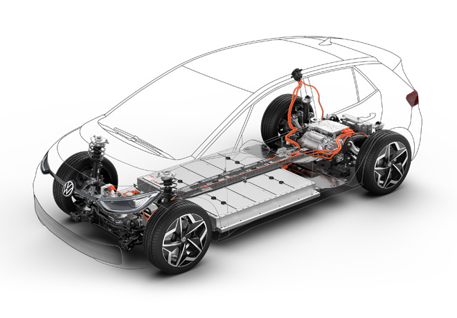 Montado en la plataforma MEB, desarrollada exclusivamente para los vehículos eléctricos del Grupo Volkswagen, todos los ID. tienen sus baterías colocadas en el suelo, lo que permite un mejor uso del habitáculo. Otro factor crucial es el uso por parte del conductor y los pasajeros del habitáculo, que en un auto de combustión estaría ocupado por el motor.