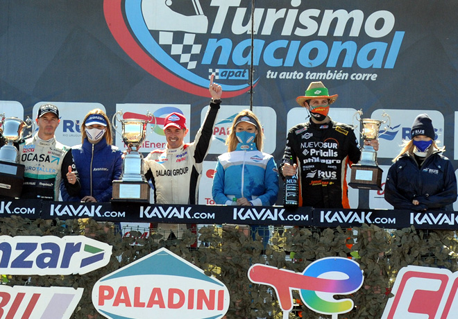 A su vez el piloto del Chaco debÃa soportar el asedio de Facundo Chapur, quien finalmente logró superarlo, manteniéndose a la expectativa Leonel PernÃa, mientras se producÃa el abandono de Mariano Werner por la rotura del motor de su VW Vento.