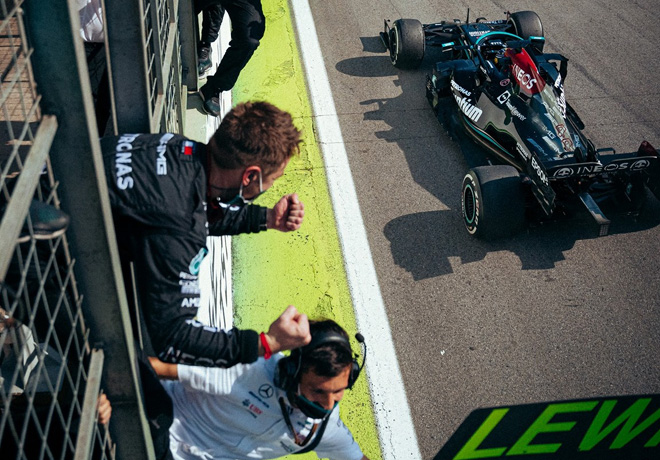 Equipos: 1) Mercedes con 521.5 puntos, 2) Red Bull Racing 510.5, 3) Ferrari 287.5, 4) McLaren 256, 5) Alpine Renault y AlphaTauri 112, 7) Aston Martin 68, 8) Williams 23, 9) Alfa Romeo Racing 11.