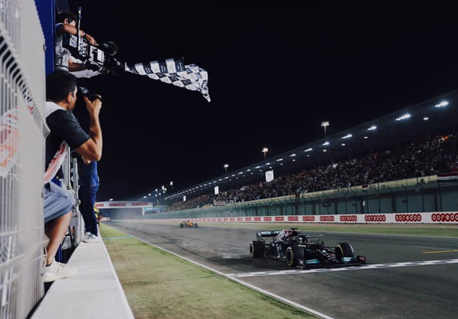 Lewis Hamilton (Mercedes-Benz) se impuso en el Gran Premio de Qatar en Losail, y con esta victoria lograda de principio a fin le ha acortado a su escolta Max Verstappen (Red Bull) otros seis puntos en el campeonato. Tercero finalizó Fernando Alonso con el Alpine-Renault, retornando al podio por primera vez desde el Gran Premio de HungrÃa de 2014.