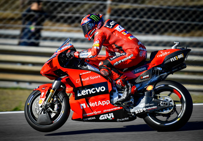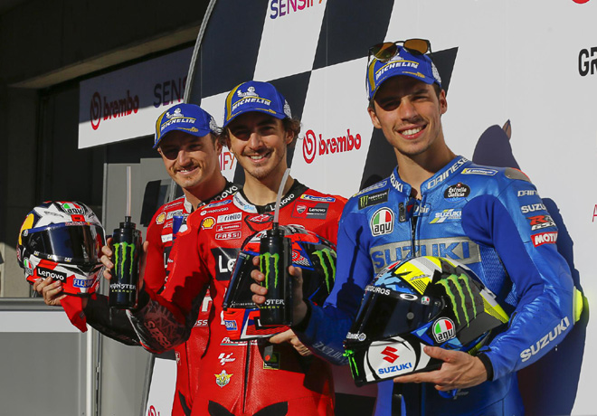 ‘Pecco’ fue muy consistente en su ritmo para imponerse en Portimao por delante de Joan Mir (Team Suzuki Ecstar) y su propio compañero, Jack Miller, en una carrera finalizada a dos vueltas de la bandera a cuadros tras un ‘crash’ que involucró a Iker Lecuona (Tech3 KTM Factory Racing) y Miguel Oliveira (Red Bull KTM Factory Racing). El triunfo de ‘Pecco’, el tercero del año, supuso también la consecución del TÃtulo de Constructores por parte de Ducati, reteniendo la corona obtenida en 2020.