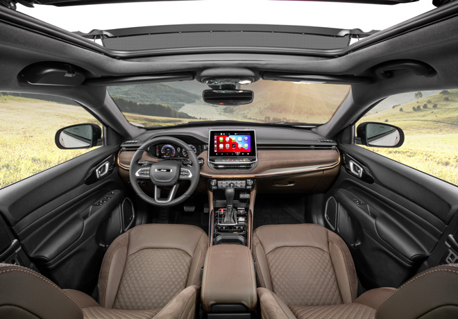 No falta espacio en el Commander. Hay tres filas de asientos, siete asientos y uno de los baúles más grandes de la categoría con 1.760 litros con todos los asientos bajados, 661 litros en la configuración con cinco ocupantes y 233 litros con los siete asientos levantados, el mayor volumen con siete ocupantes en el segmento. Además, el modelo también cuenta con un espacio de almacenamiento de 31 litros de volumen.