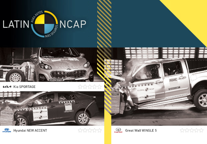 Los nuevos resultados del Programa de Evaluación de Vehículos Nuevos para América Latina y el Caribe, Latin NCAP, fueron publicados hoy con resultados decepcionantes de cero estrellas para el Kia Sportage, Hyundai Accent (nuevo modelo) y el Great Wall Wingle 5.