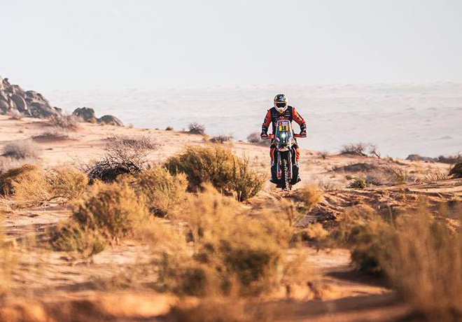 Un terreno rápido, compuesto en un 66% de arena dirección noroeste, con la ciudad de Bisha en el punto de mira, donde se instalará la caravana dos noches antes de la etapa final. Algunas máquinas se han visto superadas por los más de 6.500 km de carrera alcanzados hoy, como la moto número 1 de KTM, pero otros vehículos no se han privado de una victoria a dos días del final, como el coche de Peterhansel, que suma su 49ª especial en cuatro ruedas.