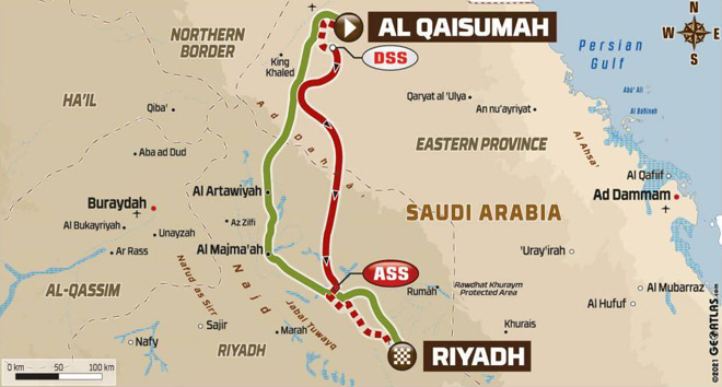 El Dakar avanza rumbo al sur hasta la capital de Riyadh. La especial más larga del rally se alza como un menú completo de los placeres del rally-raid: un primer plato de pistas rápidas durante cerca de 200 km, un segundo plato compuesto por cordones de dunas de tamaño variable y de postre un final de etapa pedregoso, en el que destacará una secuencia de uadis. Se trata de una de las pruebas de fuego de la primera semana.