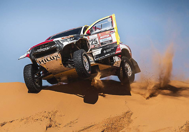 Nasser Al-Attiyah, por su parte, se está encargando por el momento de vigilar de cerca de Loeb, pero deberá mantener un ojo puesto en su compañero de equipo argentino de Toyota, 3º en la general. Los Prototipos Ligeros siguen dominados por el dúo de South Racing integrado por “Chaleco” López y Sebastian Eriksson, a quienes les separan 22 minutos, que están dejando a Seth Quintero embolsarse las especiales: hoy, de hecho, el “kid” se ha adjudicado su etapa número 5.
