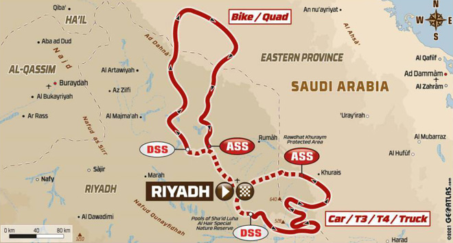 Para rematar la primera semana del rally, el segundo especial con salida y llegada en la capital explorará el oeste de Riyadh. Los numerosos cruces de pistas al inicio de la especial exigirán a los copilotos una atención máxima. Las dunas del día aparecerán a mitad del programa, con unos cuarenta kilómetros de ergs que superar. Aquellos pilotos que consigan abrir hueco en este tramo podrán intentar aumentar su ventaja en las pistas rápidas previstas al final.