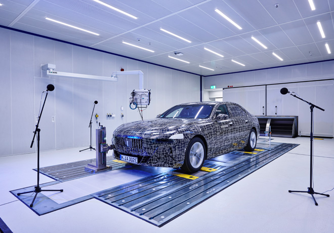 En el Centro de Investigación e Innovación (FIZ) de Múnich, los ingenieros de pruebas y desarrollo comprueban la gama completa de emisiones e inmisiones de sonido del vehÃculo. Se analiza en detalle el ruido motor y de rodadura, asà como la aeroacústica y el confort vibratorio, para determinar en profundidad las propiedades acústicas de los nuevos sedanes de lujo. Esto también incluye la alineación precisa de la protección acústica de peatones y el sonido del motor emitido en el interior del BMW i7, este último desarrollado como parte de BMW IconicSounds Electric, una colaboración entre BMW Group y el compositor de música de cine de Hollywood, Hans Zimmer.