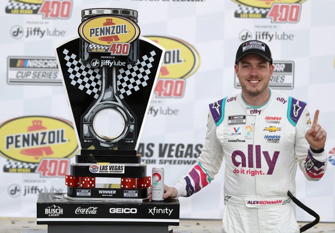 Alex Bowman logró su primera victoria de la temporada de la NASCAR Cup Series, conteniendo a su compañero de equipo Kyle Larson en tiempo extra en Las Vegas Motor Speedway.