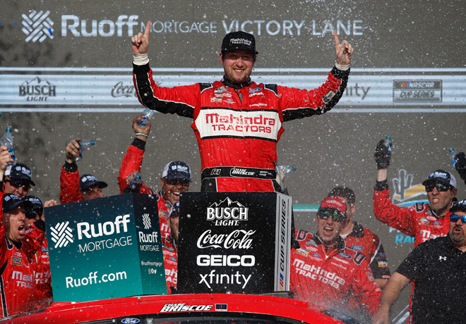 Los pilotos de Chevrolet, Ross Chastain y Tyler Reddick, también iban por su primera victoria; pero el Ford de Briscoe pudo alejarse, dejándolos en segundo y tercer lugar respectivamente.
