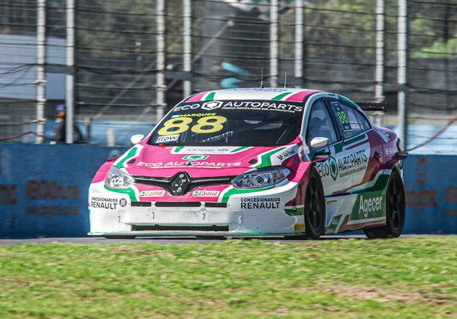 En el comienzo, Marques pudo contener a Lucas Bohdanowicz y se hizo con la punta, mientras que el piloto chaqueño también perdÃa posiciones con Montenegro y Scuncio Moro, mientras que Rodrigo Aramendia no podÃa tomar la salida de la carrera por problemas en su Citroën C4 Lounge, hasta que un incidente que involucró a Cyro Fontes, Nicolás Palau y Miguel GarcÃa motivó el ingreso del Auto de Seguridad, mientras que GarcÃa era penalizado con bandera negra por maniobra peligrosa a Palau.