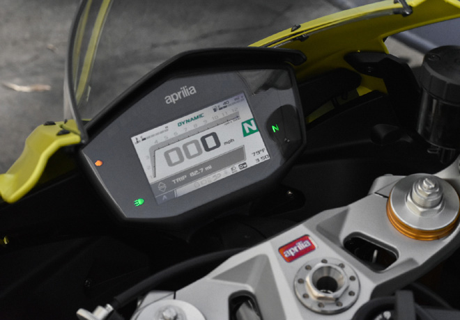 La Aprilia RS 660 tiene un sistema APRC lo cual representa la máxima evolución en la gestión de controles electrónicos, que frece un paquete completo capaz de garantizar la máxima seguridad en el uso en ruta y mejorar el rendimiento en la pista. La plataforma inercial de 6 ejes de última generación se comunica constantemente con la unidad de control; el control de tracción (ATC), el sistema anticaballito (AWC), el control de velocidad (ACC), el sistema de cambio rápido sin embrague (AQS), el control de freno motor (AEB) y en los mapas de motor. Además, cuenta con un avanzado ABS en curva que actúa según el grado de inclinación, la velocidad y la fuerza aplicada en el freno.