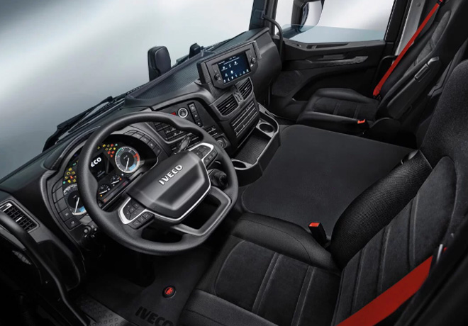 La robustez externa del IVECO T-WAY se asocia con interiores diseñados en torno a la comodidad y la seguridad de los conductores, equipados con una excelente ergonomía, tecnologías integradas y funciones de conectividad avanzadas. El salpicadero está diseñado para adaptarse a las necesidades de los conductores profesionales, con controles de fácil acceso agrupados en áreas funcionales. Los materiales utilizados y los acabados están inspirados en los estándares del sector de la automoción, rediseñados para adaptarse a las misiones Off Road. Detalles como los marcos de metal en el volante y el área de infoentretenimiento recuerdan el estilo del diseño exterior, creando una experiencia IVECO T-WAY de 360º.