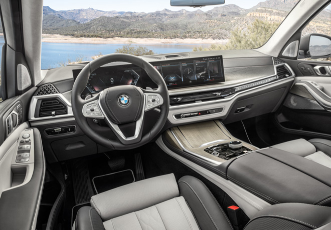La gama aún más ampliada de equipamiento de serie para el nuevo BMW X7 va más allá para mejorar la comodidad de las personas a bordo y maximizar su bienestar. Además del climatizador automático de cuatro zonas, el techo solar panorámico de cristal y el sistema de alta fidelidad, ahora también incluye los asientos de confort para el conductor y el pasajero delantero, un volante deportivo de cuero con levas de cambio y una nueva bandeja para la carga inalámbrica de teléfonos móviles compatibles.