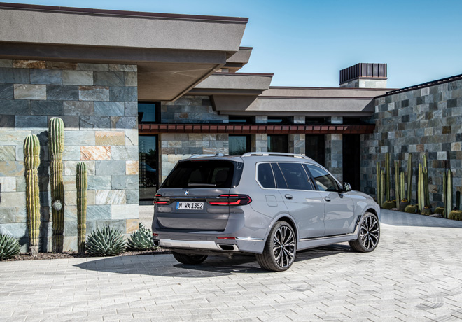 En la parte trasera, se acentúa el estilo progresivo de las unidades de luz extremadamente delgadas, que ahora tienen esculturas tridimensionales. La elegante barra cromada que conecta las unidades de luces traseras en el nuevo BMW X7 está encerrada dentro de una exquisita cubierta de vidrio.