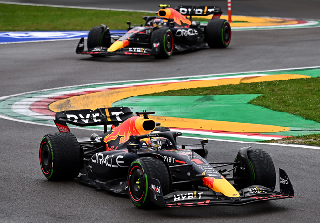 Max Verstappen ganó un dramático Gran Premio de Emilia Romagna en Imola disputado con piso húmedo y seco sobre su compañero de equipo en Red Bull, Sergio Pérez, ya que Ferrari no pudo cumplir en su propio territorio cuando Charles Leclerc hizo un trompo que lo dejó sexto, después de que Carlos Sainz se retirara en el primer giro.