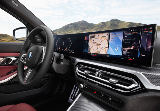 La experiencia multisensorial del vehÃculo gracias al sistema iDriveBMW iDrive con la última generación del Sistema Operativo de BMW introducido en el nuevo BMW Serie 3 abre el camino hacia el futuro digital con potentes capacidades de conectividad y procesamiento de datos, además de una interacción intuitiva entre el conductor y el vehÃculo. En el corazón de esto se encuentran la pantalla curva BMW y las capacidades ampliadas del Asistente Personal Inteligente de BMW.