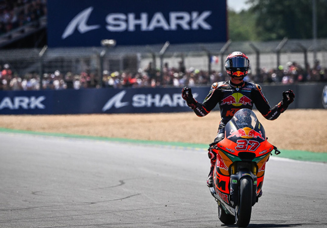 Bastianini se encontraba, por tanto, ante un escenario muy favorable, al aventajar en más de dos segundos a Miller, mientras que la atención se centraba entonces en la última plaza del podio, con Aleix y Quartararo librando una bonita batalla. El mano a mano entre ambos darÃa algo de oxÃgeno a un Miller que habÃa amagado con pasar algunos apuros finales con neumáticos blandos. Asà se llegarÃa a la última vuelta, en la que, a pesar de un susto inicial con una salvaje movimiento de su RS-GP, Aleix seguirÃa la estela de Bastianini y Miller para sumar un nuevo podio -cuarto en 5 carreras- que le permite estrechar el cerco sobre un Quartararo que se quedó sin el premio de consolación ante sus aficionados.