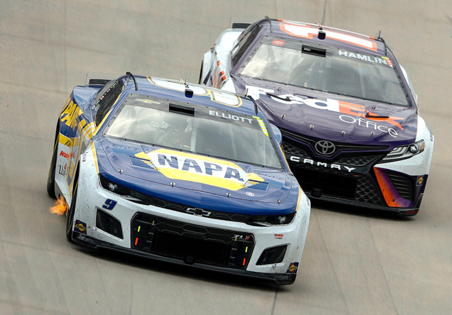 Elliott lideró las últimas 53 de las 400 vueltas, y se alejó de Ricky Stenhouse Jr. al final en una carrera llena de acción que se interrumpió 12 veces con banderas de precaución, incluida una postergación con bandera roja por mal tiempo ayer domingo, que obligó a reiniciarla hoy.