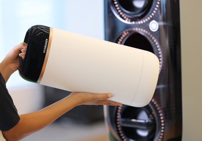 Los cartuchos portables son una manera asequible y práctica para llevar hidrógeno hasta donde la gente vive, trabaja y juega, sin necesidad de conductos. Tiene un peso previsto de 5 kg (11 lbs) y unos 400 mm de longitud por 180 mm de diámetro. Para facilitar la sustitución y rápida recarga son intercambiables, y su diseño de pequeña escala puede cubrir las necesidades energéticas en zonas remotas y no electrificadas. E incluso enviarse rápidamente en caso de catástrofe.