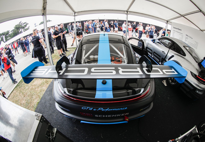 Tras su estreno mundial en el Festival de la Velocidad de Goodwood, el GT4 ePerformance hará otras escalas internacionales, con un contenido distinto en cada lugar. En el mundialmente famoso festival en el sur de Inglaterra siempre hay espacio para exhibir la tradición de Porsche en competición.