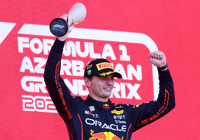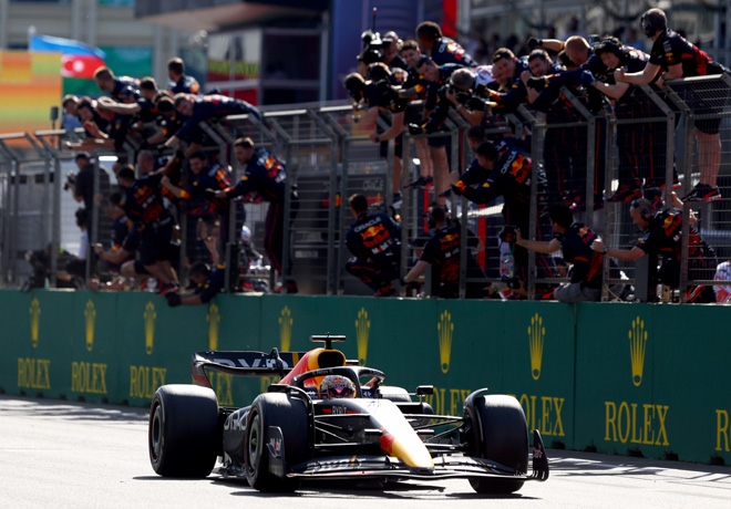 Max Verstappen fue el vencedor del Gran Premio de Azerbaiyán, liderando un 1-2 para Red Bull con el segundo puesto de Checo Pérez, después de la debacle del equipo Ferrari con los abandonos de Carlos Sainz por una falla hidráulica en la vuelta 9 y la rotura del motor de Charles Lecler en el giro 20. Esta situación le permitió a George Russell ocupar la tercera posición con su Mercedes, que mantuvo hasta la bandera a cuadros.
