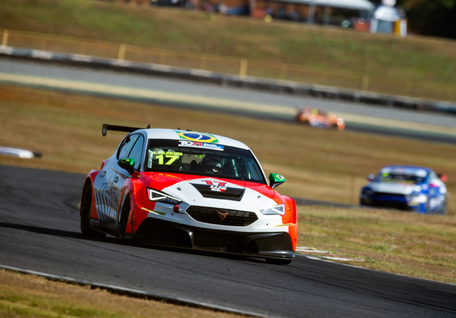 El debutante Alceu Feldmann fue el nombre de la tercera fecha del TCR South America. Tras estar adelante en los entrenamientos, hacer la pole y ganar la carrera del sábado, el brasileño del Cupra Nº17 del W2 Pro GP se llevó también la última prueba del fin de semana. Después de haber largado en la décima posición, Feldmann logró superar en la anteúltima vuelta a Juan Manuel Casella para subirse al primer escalón de podio.