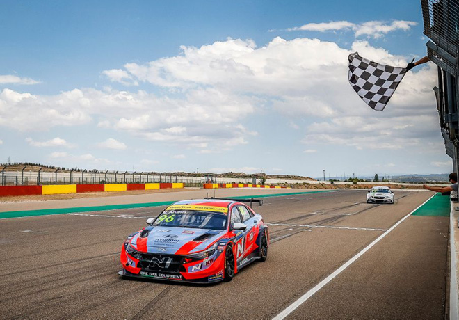Mikel Azcona logró la victoria en una exitante carrera con la parrilla parcialmente invertida en Motorland Aragón.