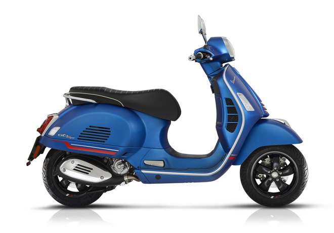Es la apuesta por una mayor deportividad a nivel de imagen. Heredera de modelos tan míticos como la Vespa GS 150 del ’55, la 180 SS del 65′ o la T5 Pole Position del 85′, pone en juego elementos como las llantas negras con cerco cromado o un asiento de tapizado específico con costuras reforzadas en color blanco. Se ofrece en cuatro colores: amarillo, blanco, rojo o negro.