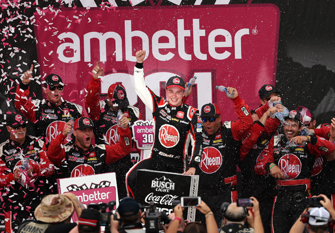 Christopher Bell (Nº20 / Toyota) consigue en el óvalo de 1.058 millas de longitud, su segunda victoria en la división mayor de NASCAR. La primera habÃa sido en el Road Course de Daytona el año pasado. Bell le ganó a Chase Elliott (Nº9 / Chevrolet) por 5»439.