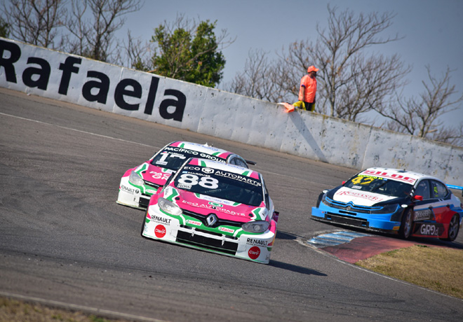Por su parte Montenegro daba cuenta de AramendÃa y de Lucas Bohdanowicz, hasta que el despiste de Milton Bobel neutralizó la carrera. Al reanudarse Marques seguÃa liderando, mientras que se retrasaba Montenegro y AramendÃa pasaba al tercer lugar aprovechando el retraso de Scuncio Moro, debiéndose destacar el avance de Figgo Bessone que habÃa largado desde la posición 12 y se colocaba sexto. Y entre las incidenias hay que destacar el problema de transmisión de Nicolás Palau y el ingreso a boxes de Vezzaro para reponer un neumático pinchado.