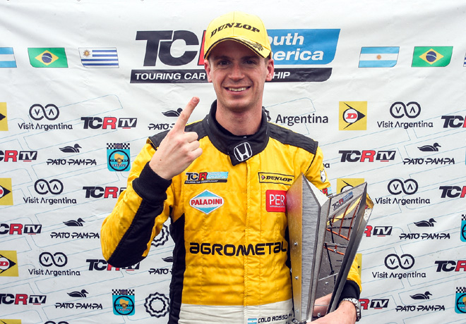 Hasta aquÃ, Rosso fue el dueño del fin de semana, ya que fue el mejor de los entrenamientos, luego de la clasificación el sábado, y hoy domingo logrando la victoria en la primera carrera. Conduciendo el Honda Civic Rosso se fue distanciando de sus perseguidores Reis y Feldman, quien tuvo problemas en su coche y finalmente finalizó en el puesto 13º con 3 vueltas perdidas.